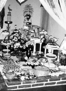 Vista parcial de la mesa tendida en homenaje a la Mae Oxúm dueña de la casa.