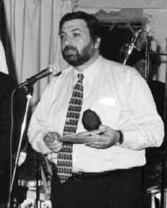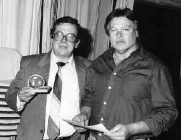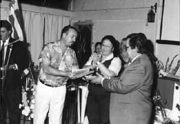 Periodista Victor Chamorro recibiendo de manos del Pai Juan Andrés de Ogun la distinción especial por su programa «Tercera Semana» que se emite por Cable Plus los miercoles.