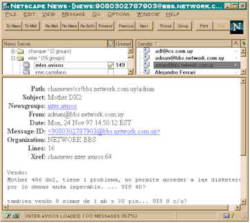 hagas doble click en el nombre del grupo de noticias. En el cuadro derecho aparecen los mensajes. |